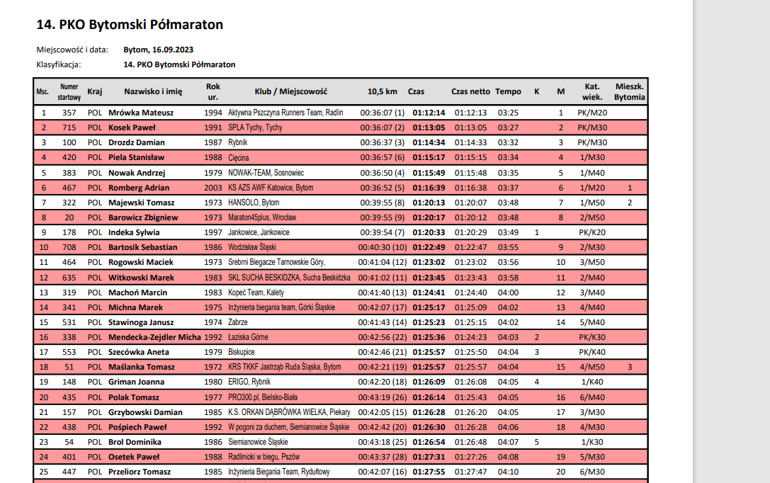 Bytomski Półmaraton 2023. Wyniki