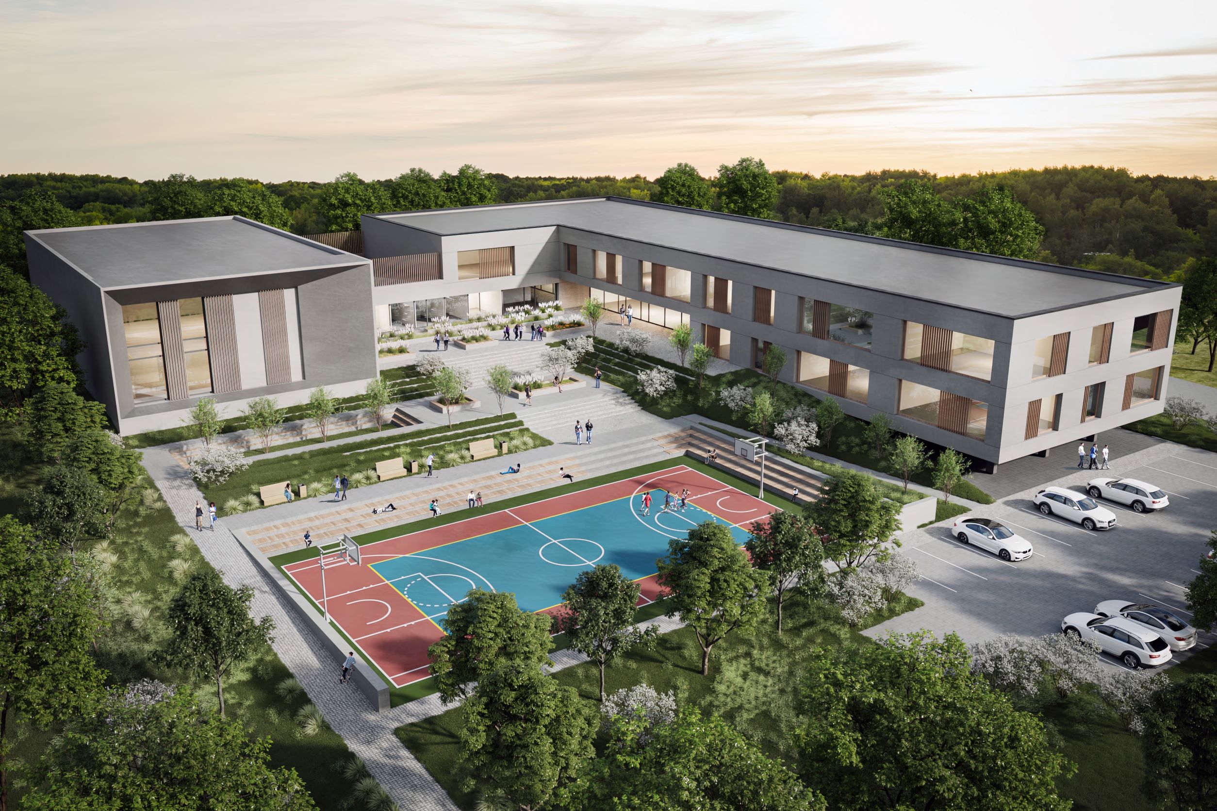 Zaprezentowany plan zakłada również powstanie nowoczesnej publicznej szkoły podstawowej, która po wybudowaniu przez i na koszt dewelopera przejdzie na własność samorządu. Aby realizacja tej części inwestycji była możliwa, Atal podpisał porozumienie z prezydentem Chorzowa, który uzyskał mandat radnych do tej czynności w jednogłośnym głosowaniu przedmiotowej uchwały. Według wstępnych założeń, w szkole będzie mogło uczyć się ok. 200 uczniów i uczennic, do dyspozycji których będą sala gimnastyczna i boisko zewnętrzne.