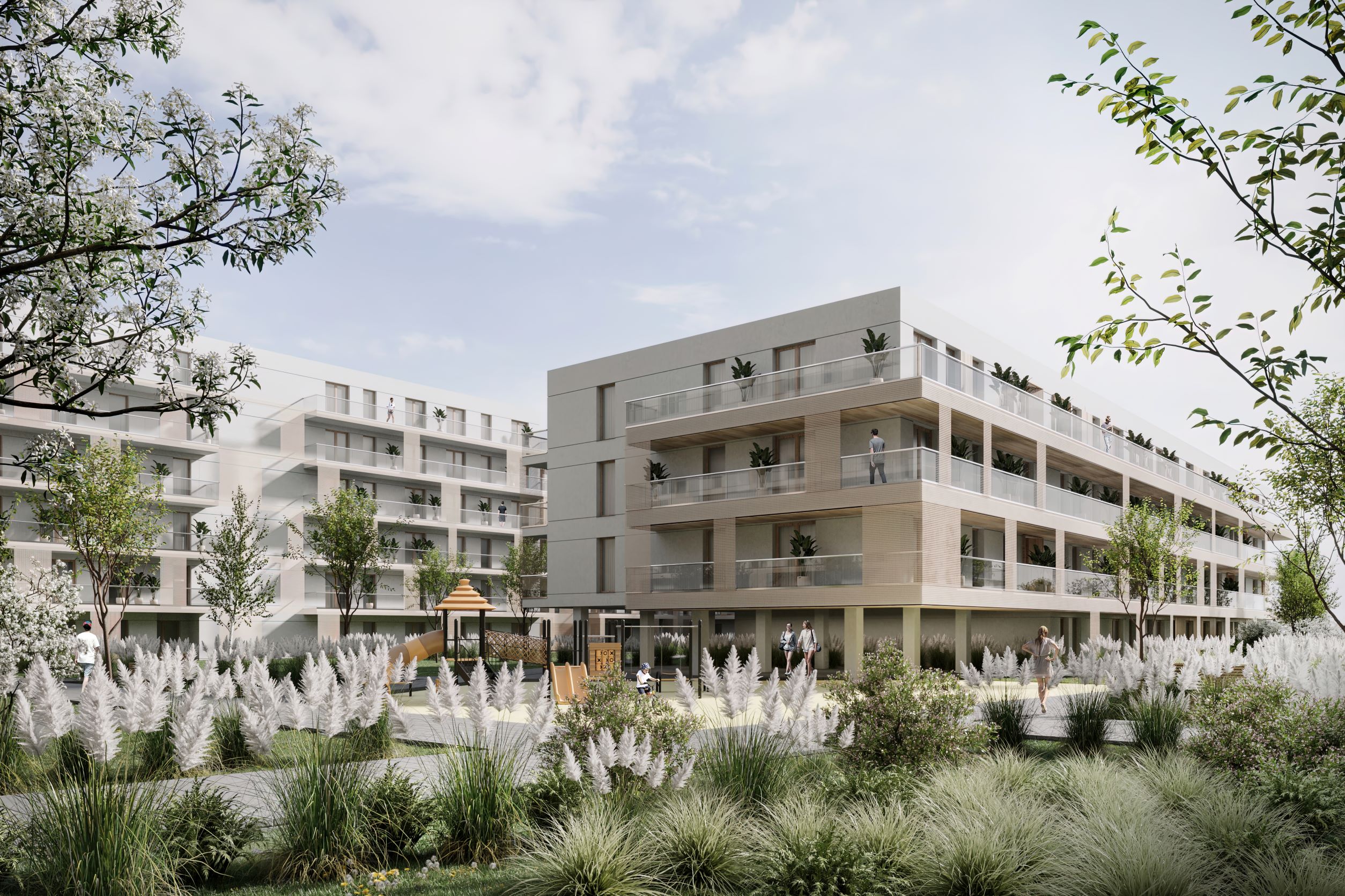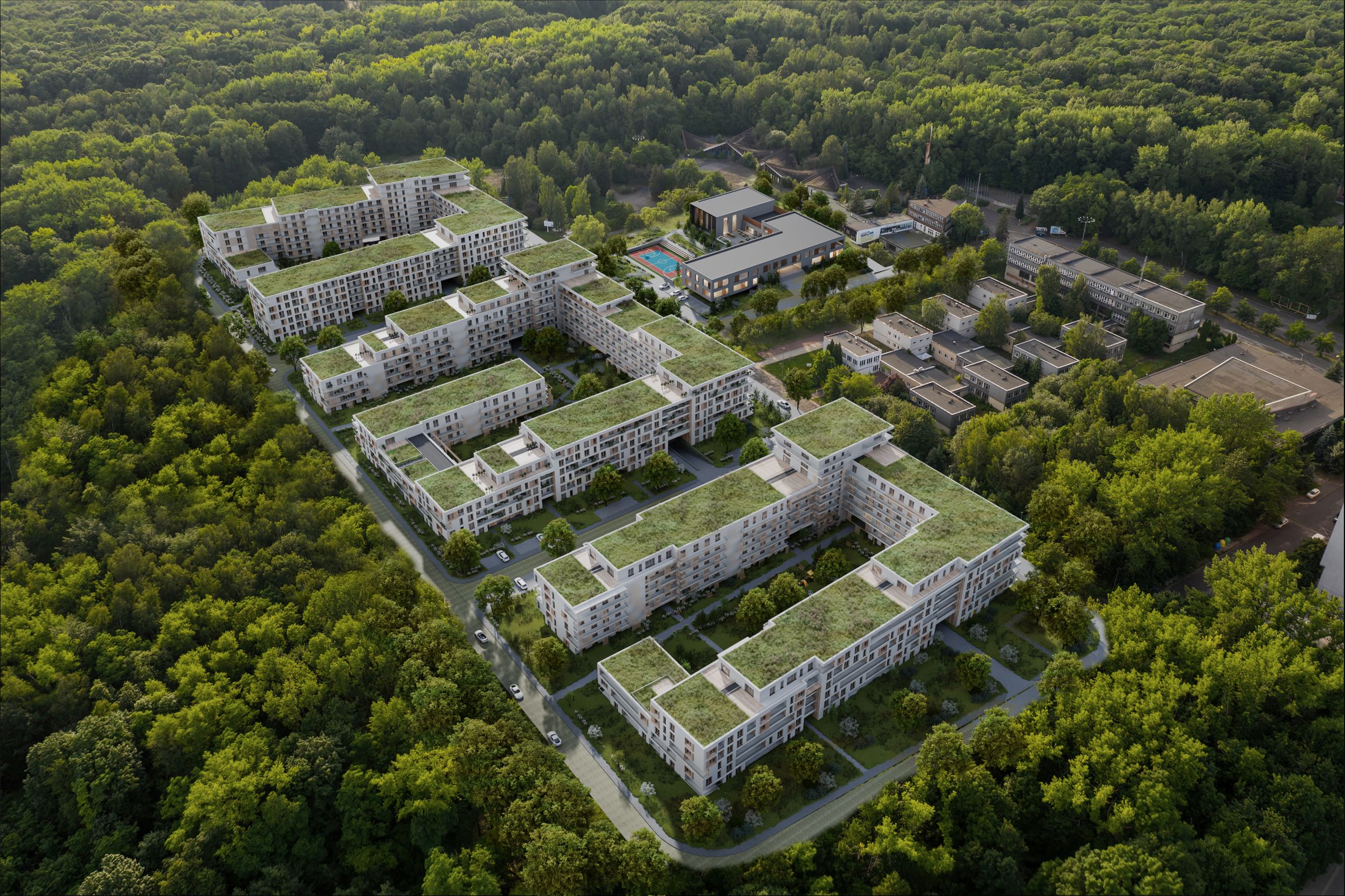 Nie tylko osiedle, ale i szkołę i przedszkole. Inwestycja zakłada powstanie trzech kaskadowych budynków mieszkalnych, które zajmą powierzchnię ok. 17 proc. działki. Oprócz mieszkań znajdą się w nich także lokale z przeznaczeniem na funkcje usługowe, np. przedszkole.