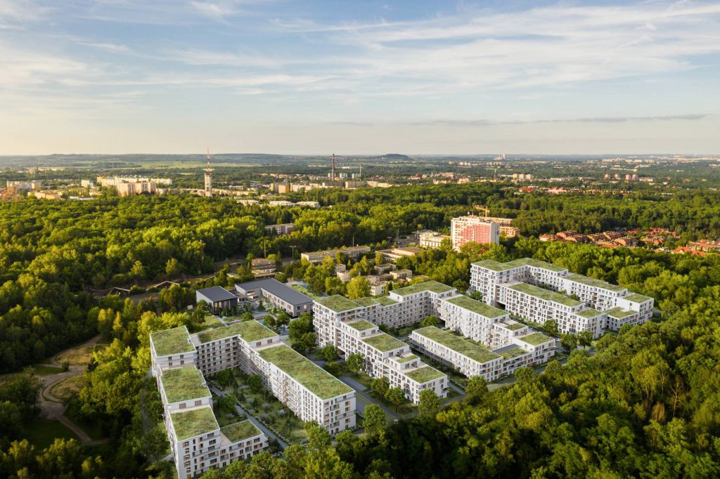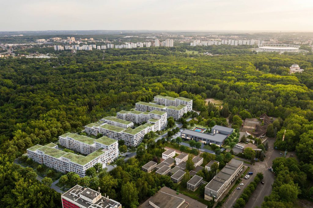 Autorem koncepcji jest katowicki architekt Wojciech Wojciechowski z zespołem. To m.in. autor projektu wieżowców Atal Olimpijska w Katowicach i Sokolska 30 Towers. W projekcie osiedla, utrzymanym w minimalistycznym stylu (cytuję opis dewelopera), dominują jasne barwy elewacji budynków oraz przeszklenia balkonów i tarasów. Usytuowanie budynków ma zapewnić mieszkaniom możliwie jak najlepsze nasłonecznienie i przewietrzanie. Jednakże priorytetem dla architektów i dewelopera było nadanie zabudowie takich cech, dzięki którym harmonijnie wkomponuje się ona w parkowe otoczenie – czytamy w opisie inwestycji.
