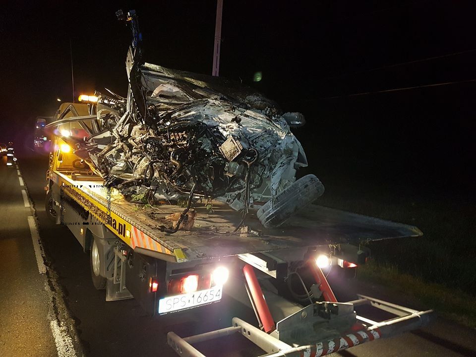 Okropny wypadek w Ćwiklicach pod Pszczyną. Zmiażdżony Ford zaczynał się palić, a w środku był zakleszczony kierowca!
