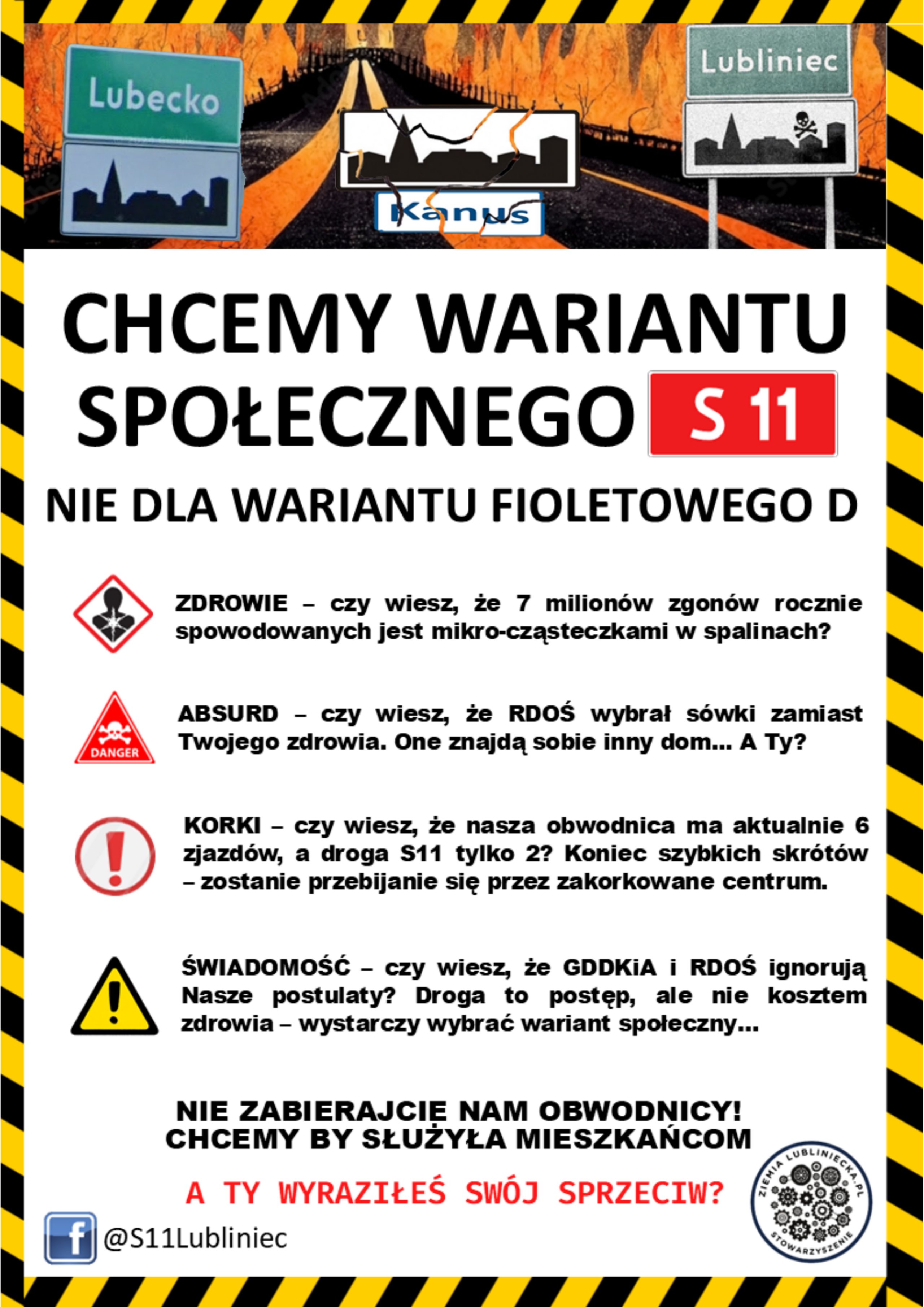 Droga S11 ma być połączeniem między Górnym Śląskiem, a Poznaniem i Pomorzem Zachodnim. Jednak to odcinek 1 (od obwodnicy w Tarnowskich Górach do granicy województwa opolskiego) wzbudza największe emocje. Sprawa dotyczy przede wszystkim Lublińca i Lubecka. Mieszkańcy protestują, bo jak mówią będą zamknięci między dwoma drogami szybkiego ruchu. To z kolei oznacza dla nich więcej smogu i hałasu, a także wyłączenie obwodnicy, która teraz jest dla nich nieodłącznym elementem codziennego funkcjonowania.