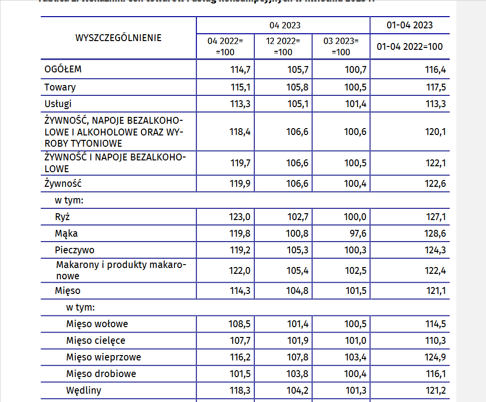 W stosunku do poprzedniego miesiąca ceny towarów i usług wzrosły o 0,7% (w tym usług – o 1,4% i towarów – o 0,5%). Jaka była inflacja w kwietniu 2023?
