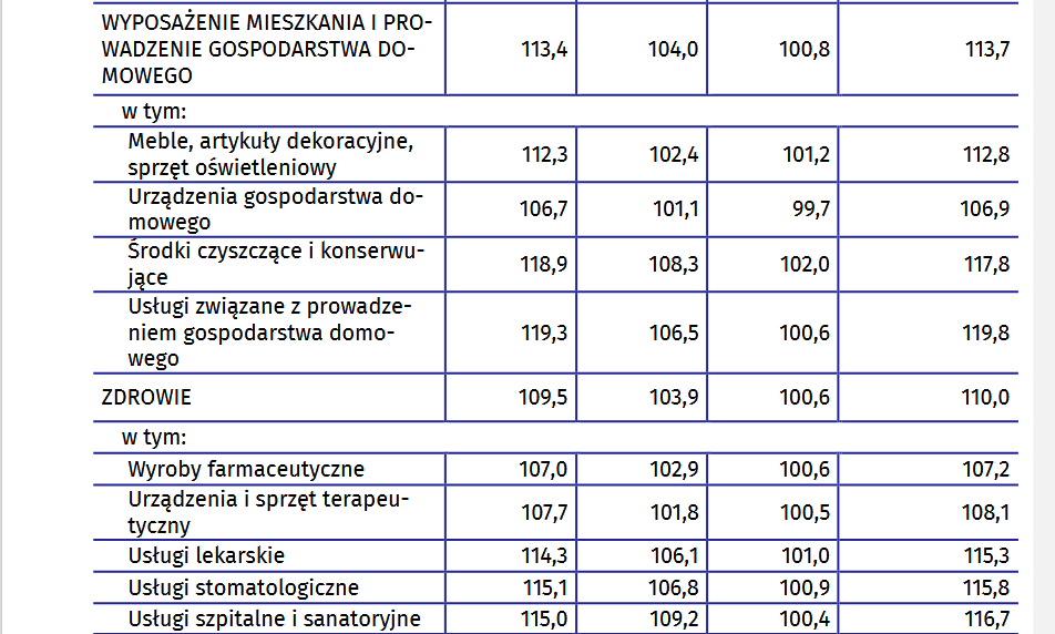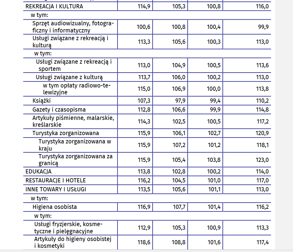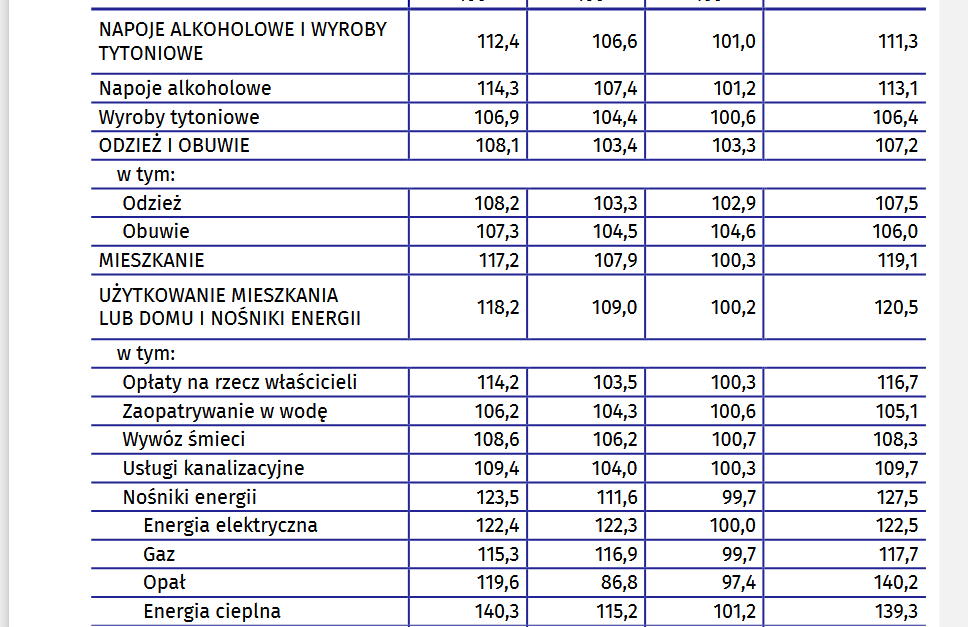 Najbardziej podrożały: żywność, obuwie, odzież, użytkowanie mieszkania i domu, a także hotele i restauracje.