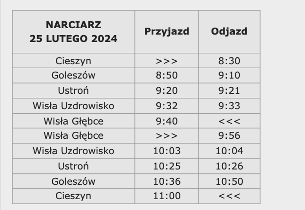 Ceny za taką przejażdżkę nie są niskie. Zaraz do nich wrócimy. Na razie jednak zobaczcie rozkład jazdy na zimę.