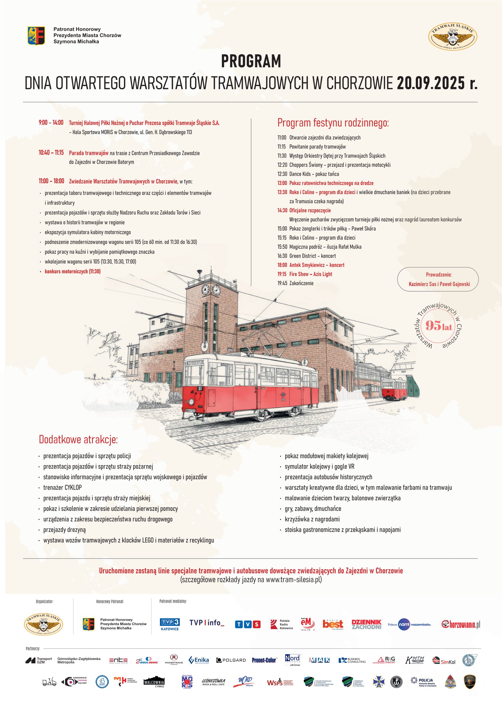 Jeśli planują Państwo coś na 20 września 2025 r., to… nie róbcie tego. Z pełną odpowiedzialnością za słowo pisane informujemy, że na ten dzień najlepszą propozycję mamy… my! Spółka Tramwaje Śląskie S.A. po raz kolejny zaprasza na Dzień Otwarty, tym razem w Chorzowie. 20 września świętować będziemy 95-lecie tamtejszych Warsztatów Tramwajowych. Atrakcji będzie co niemiara.