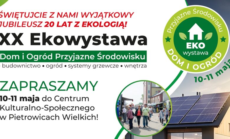 W dniach 10–11 maja Centrum Kulturalno-Społeczne w Pietrowicach Wielkich stanie się sercem ekologicznych inspiracji. Wraca bowiem jedno z największych wydarzeń proekologicznych w południowej Polsce – XX Ekowystawa. Dom i Ogród Przyjazne Środowisku. Jubileuszowa edycja zapowiada się imponująco: ponad 100 wystawców, wykłady ekspertów, koncerty gwiazd i wiele atrakcji dla całych rodzin – a wszystko to przy wstępie wolnym!