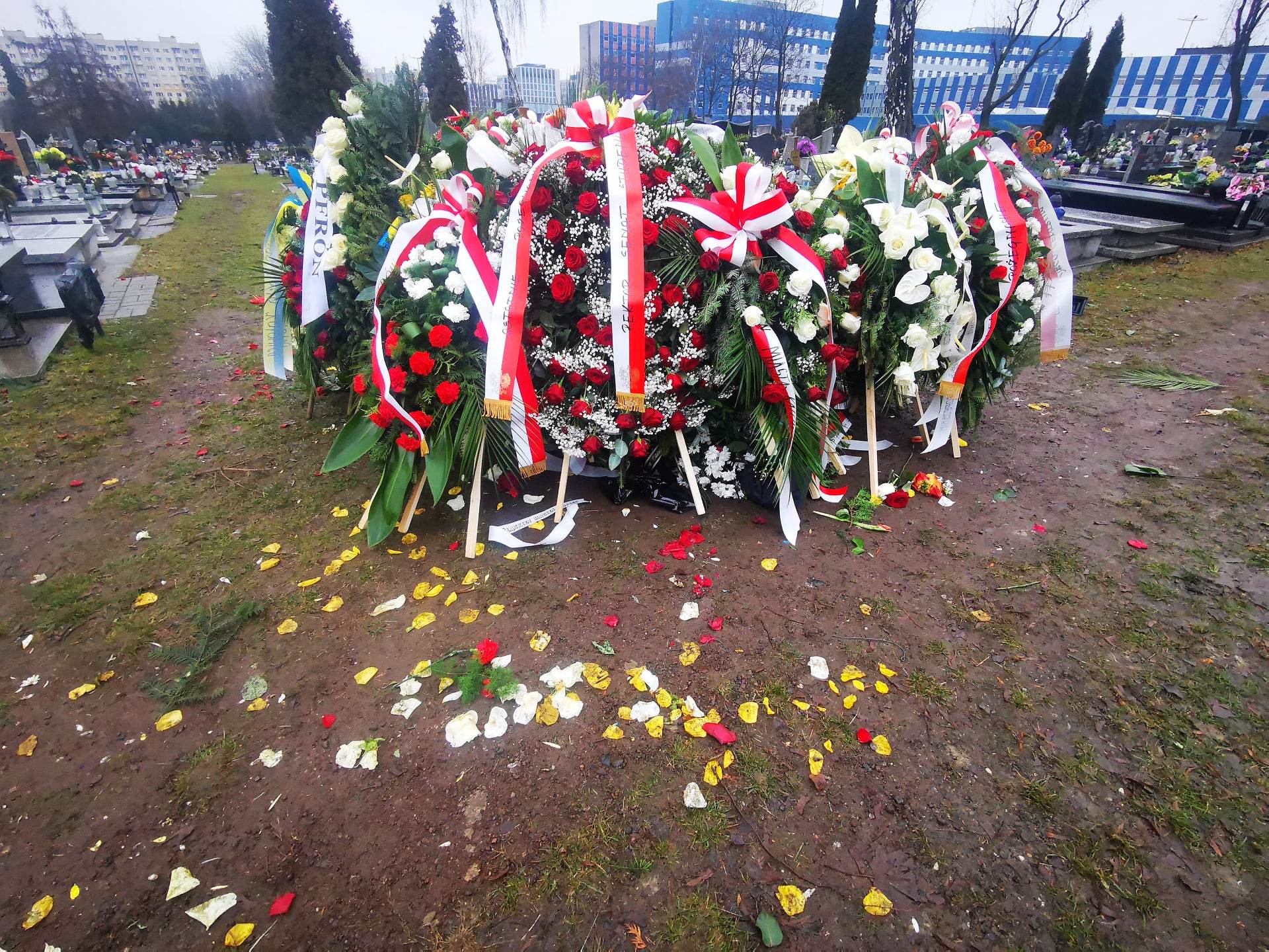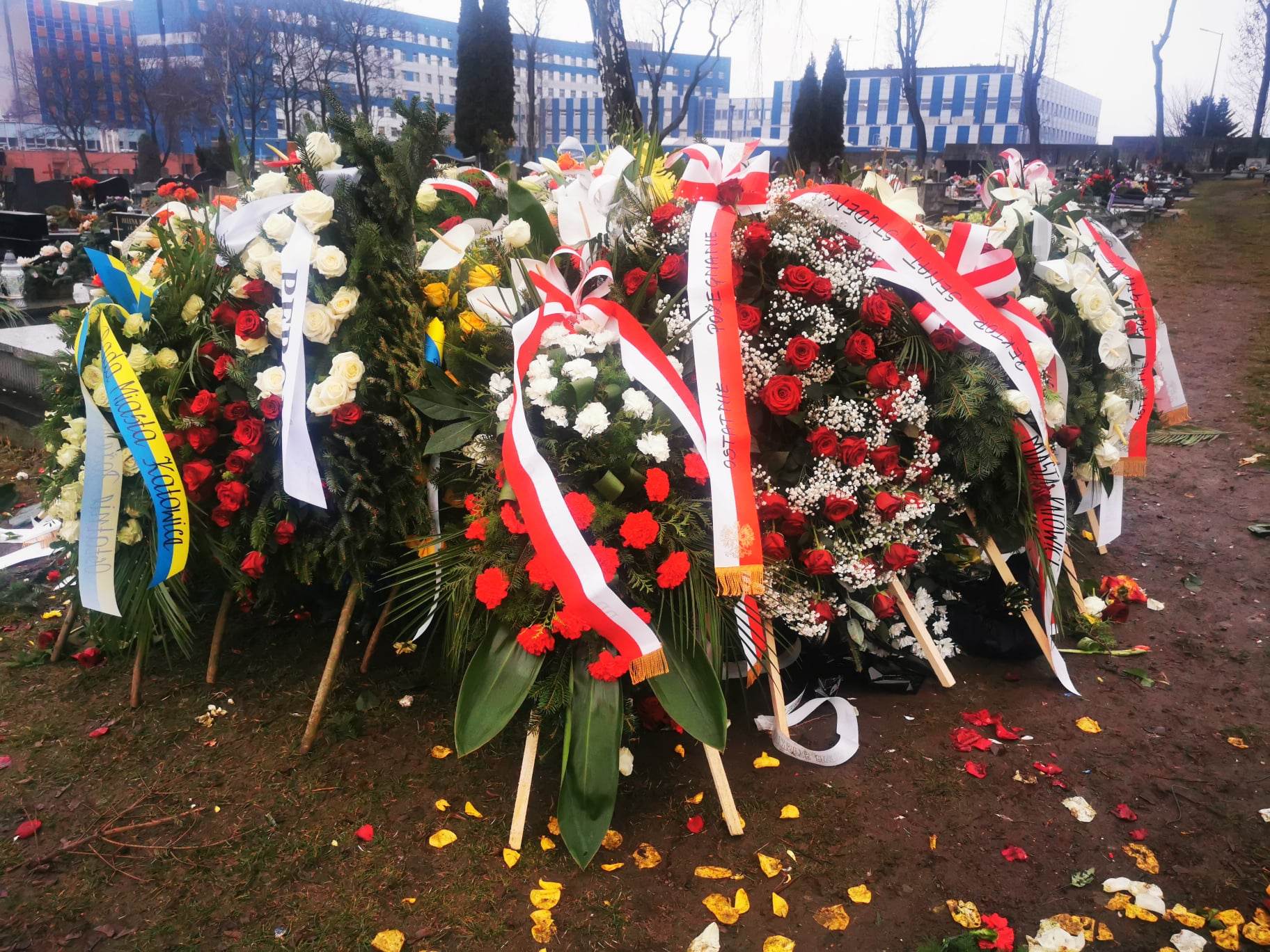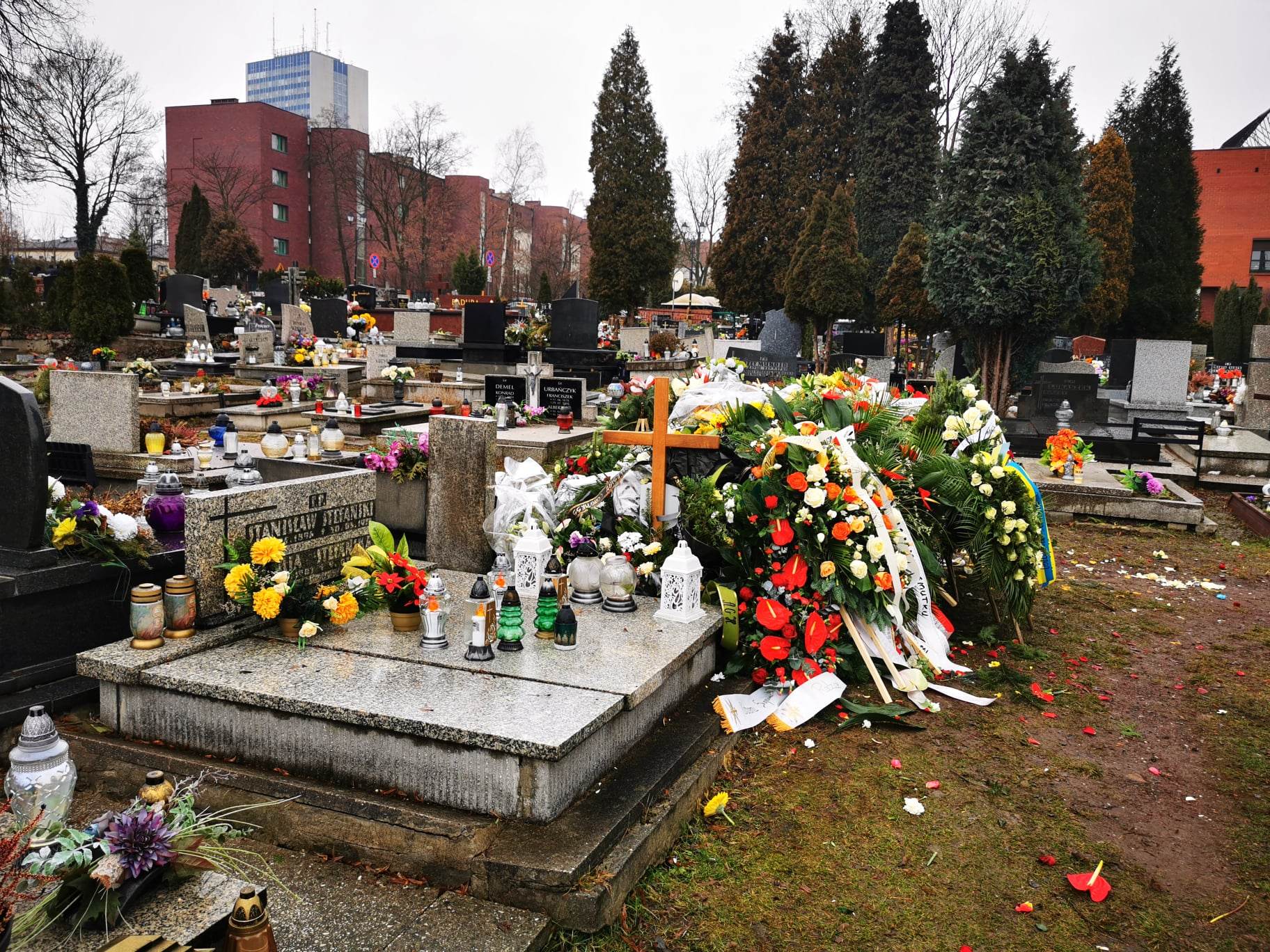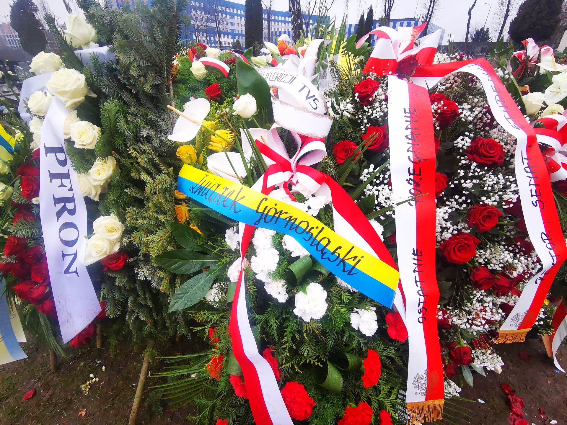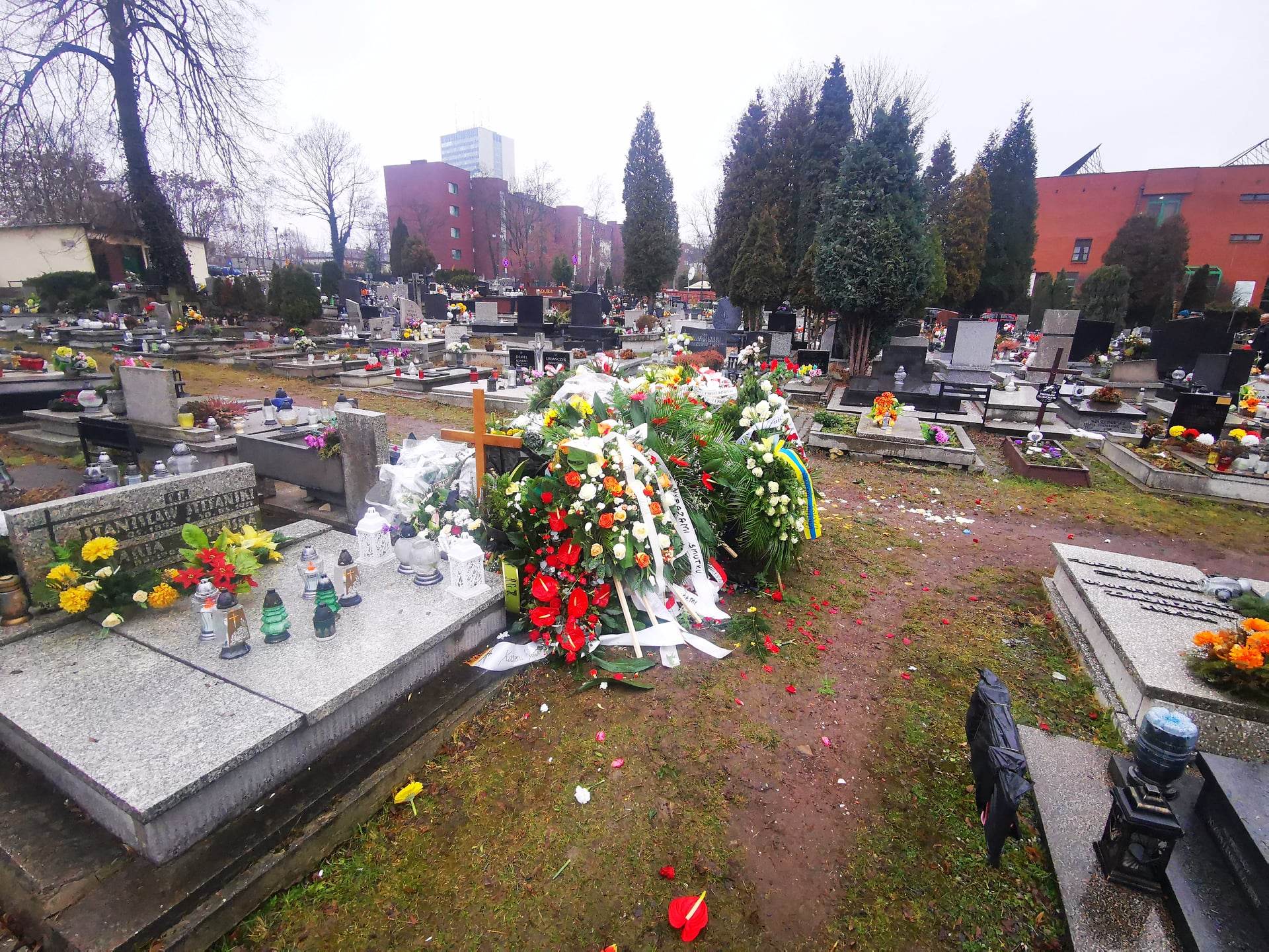 Czegoś takiego na cmentarzu przy Sienkiewicza jeszcze nie widzieli. Grób senatora Marka Plury tonie w kwiatach. W zasadzie – wcale nie widać grobu. Widać ogromny kopiec wieńców i wiązanek. Nie ma wątpliwości: śmierć tego wielkiego i skromnego Ślązaka poruszyła region i kraj, niezależnie od opcji politycznych. Są tu piękne wieńce od rodziny i instytucji, są wiązanki od przyjaciół, polityków, stowarzyszeń, ludzi, którym Marek Plura pomógł. Są białe i czerwone róże, anturium, wiązanki żółto-niebieskie, wzruszająca pojedyncza czerwona róża. Zobaczcie na zdjęciach na końcu tekstu morze kwiatów na grobie Marka Plury. Tak to wygląda w całości.