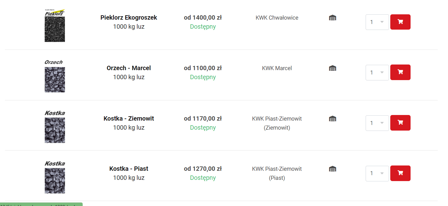 Węglokoks Kraj. KWK Bobrek – Piekary. Ceny