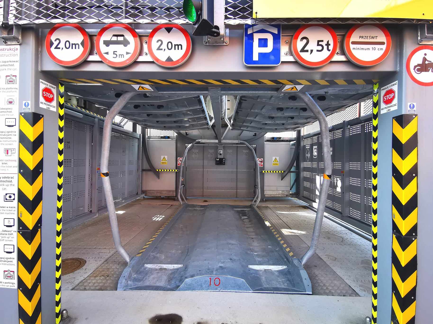 Kierowca musi wjechać na metalową platformę, zostawić samochód na biegu i hamulcu ręcznym i wysiąść. Następnie musi wpisać odpowiednie dane w pobliskim automacie. Po chwili platforma z samochodem jedzie do góry.