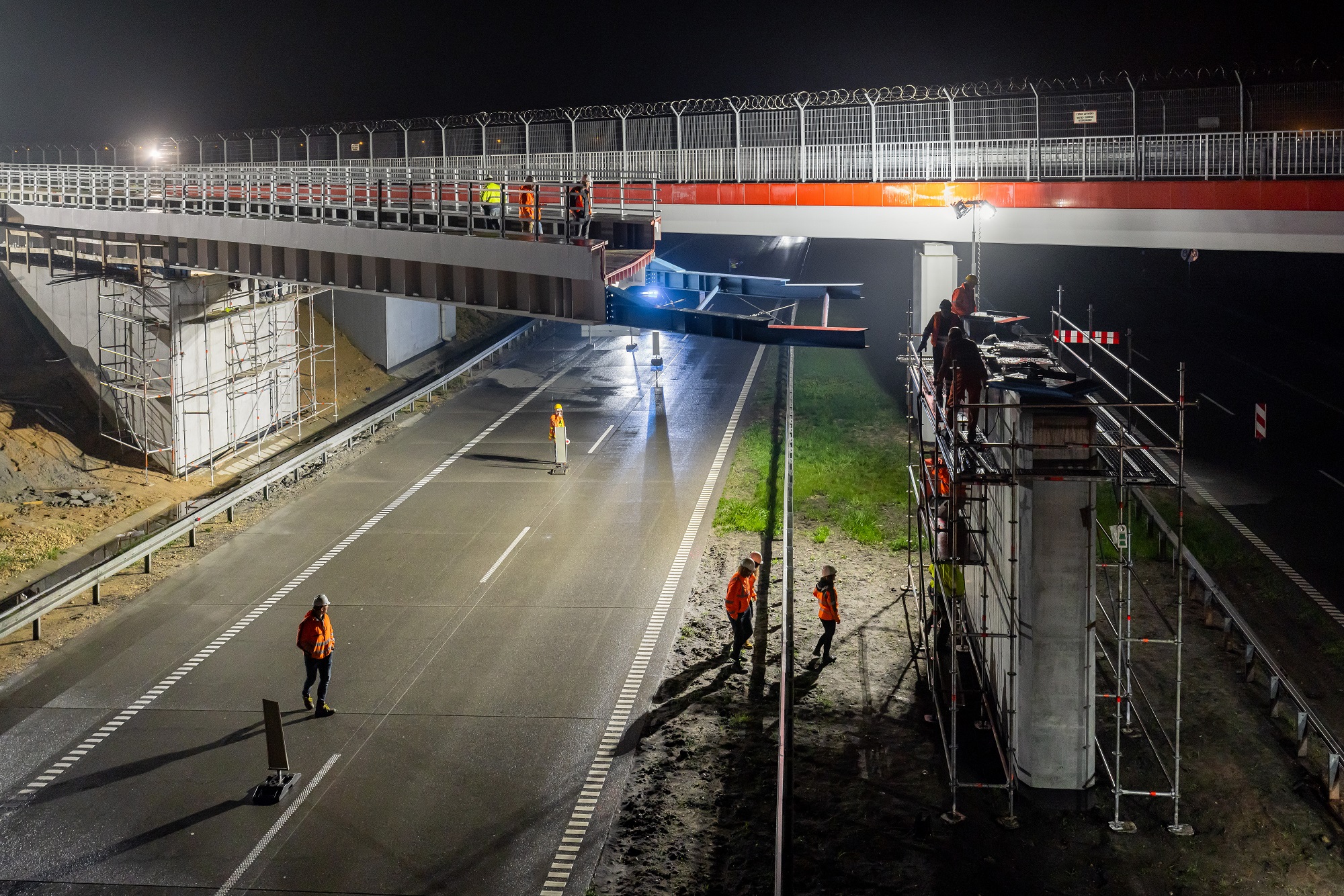 Montowali go nocą. Zobacz, jak powstaje wiadukt kolejowy nad A1