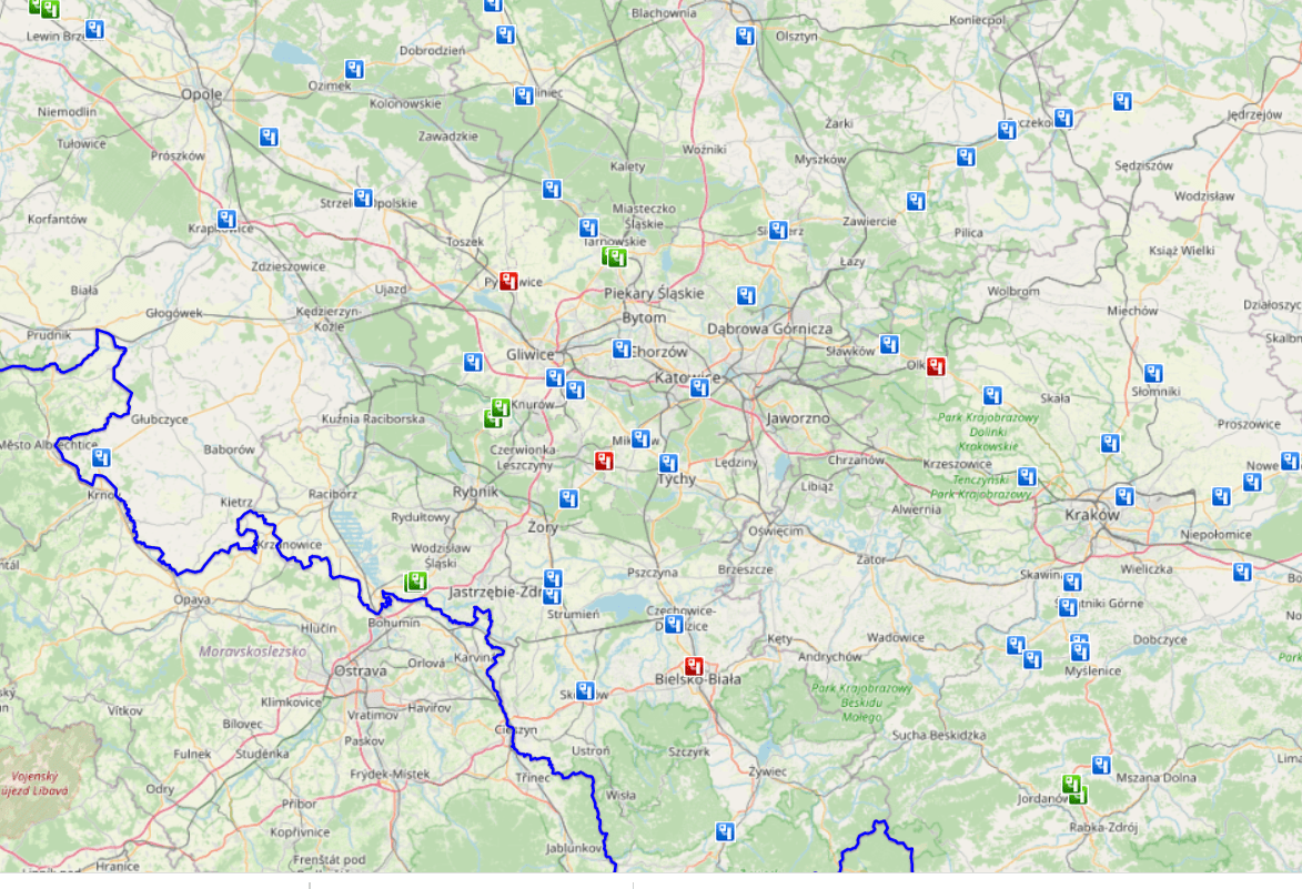 Mapa fotoradarów w woj. śląskim
