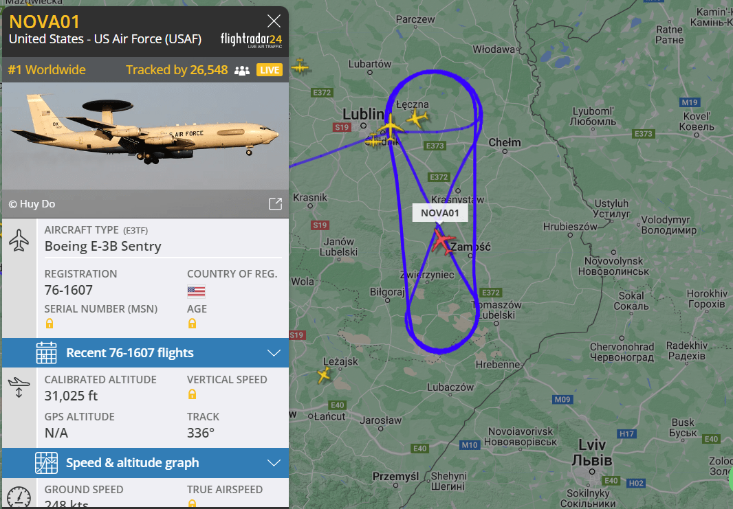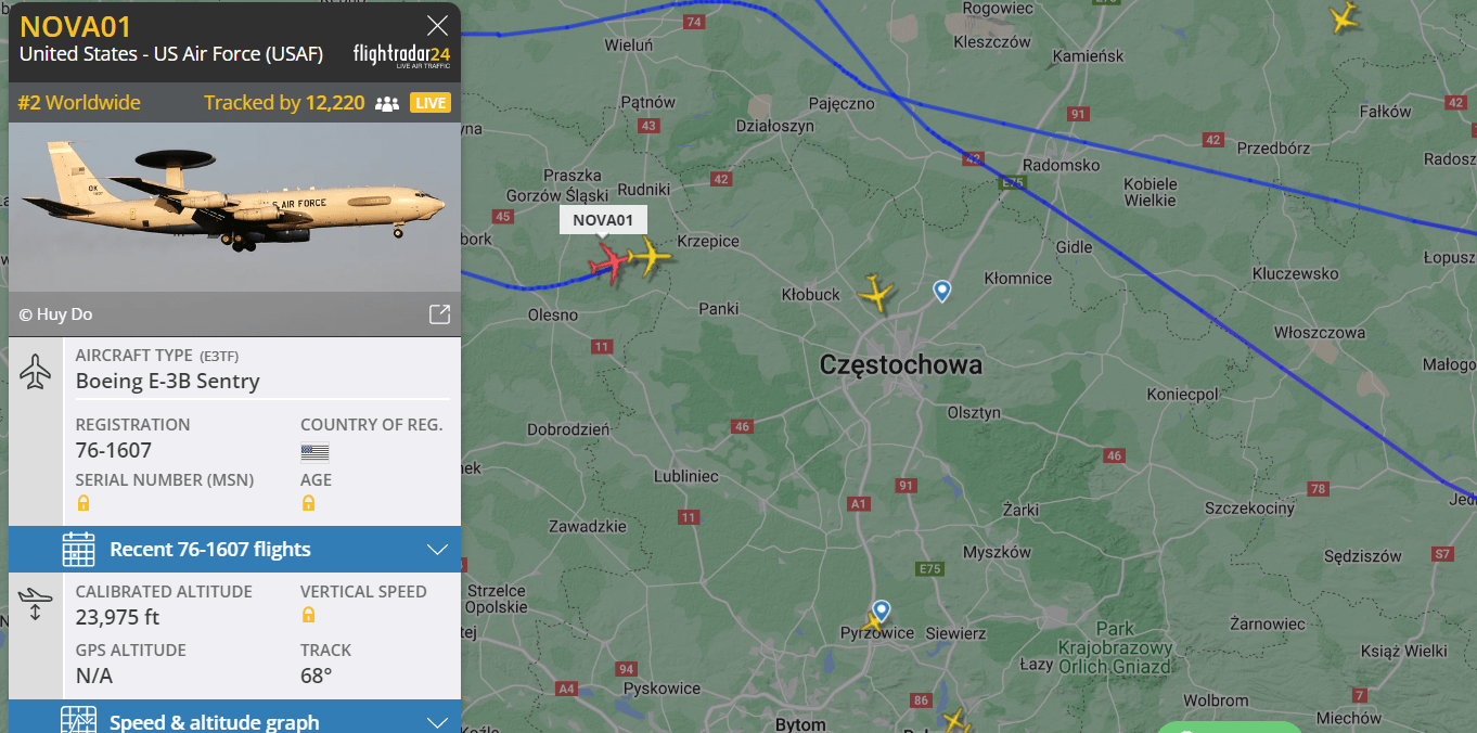 Boeing E-3B Sentry nad Polską 20 lutego. I to nie jeden, a trzy! Ich obecność ma związek z wizytą prezydenta USA. Joe Biden w Polsce i Ukrainie.