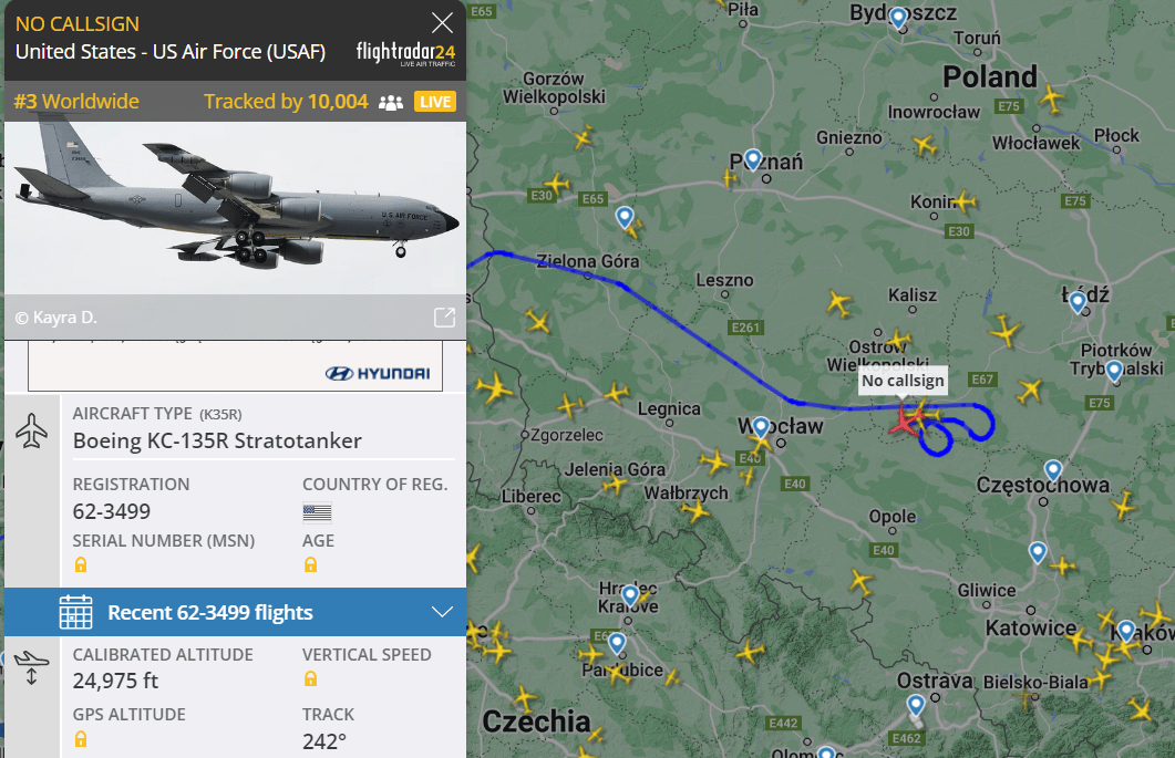 Boeing E-3B Sentry nad Polską 20.02. Te loty na portalu flightradar.com śledzi na żywo nawet ponad 22 – 26 tys. ludzi. Nic dziwnego! Do tej pory, owszem Boeing E-3B Sentry latał nad Polską, ale trzy samoloty? Do tego dochodzi jeszcze Stratotanker, czyli powietrzna cysterna. Jest i River Joint.