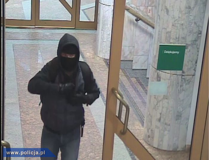 Napad na bank z bronią w ręku! Bandyta ze zdjęć jest na wolności! [ZDJĘCIA]
