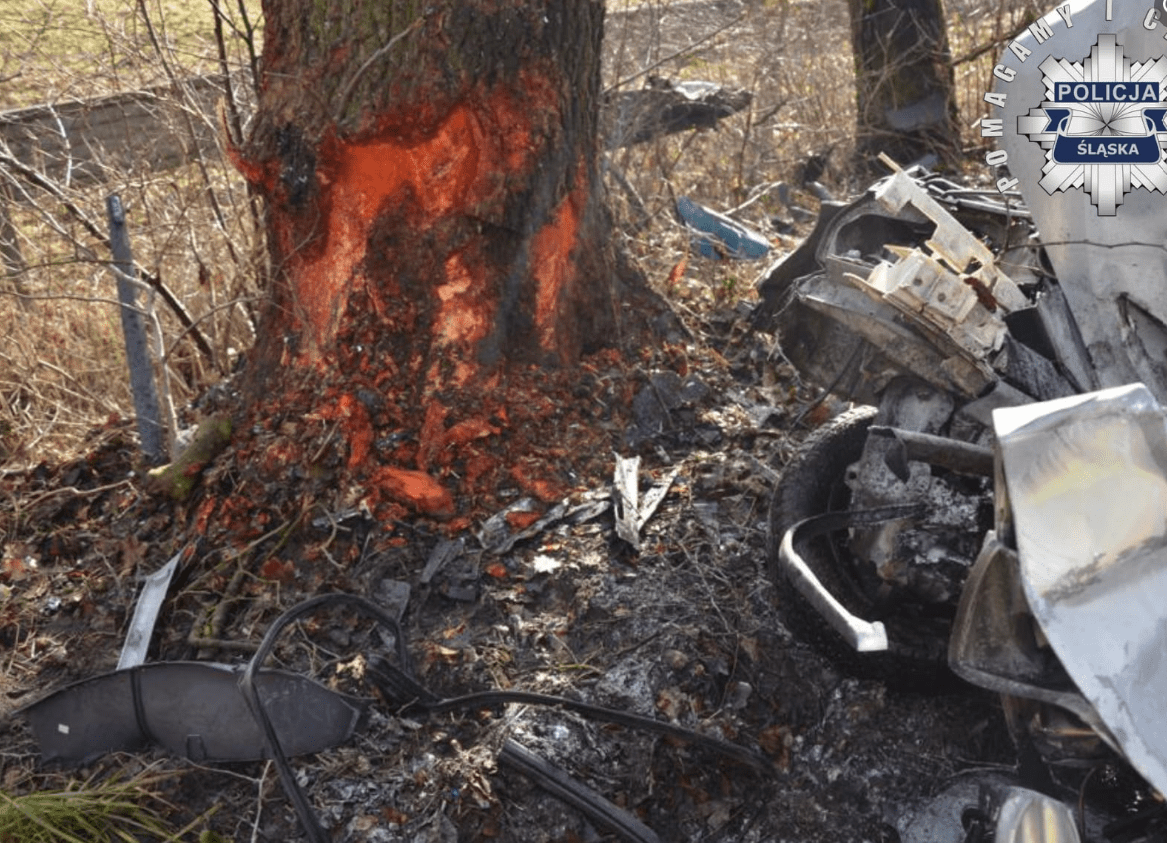 Auto z impetem uderzyło w przydrożne drzewo Fot. Śląska Policja
