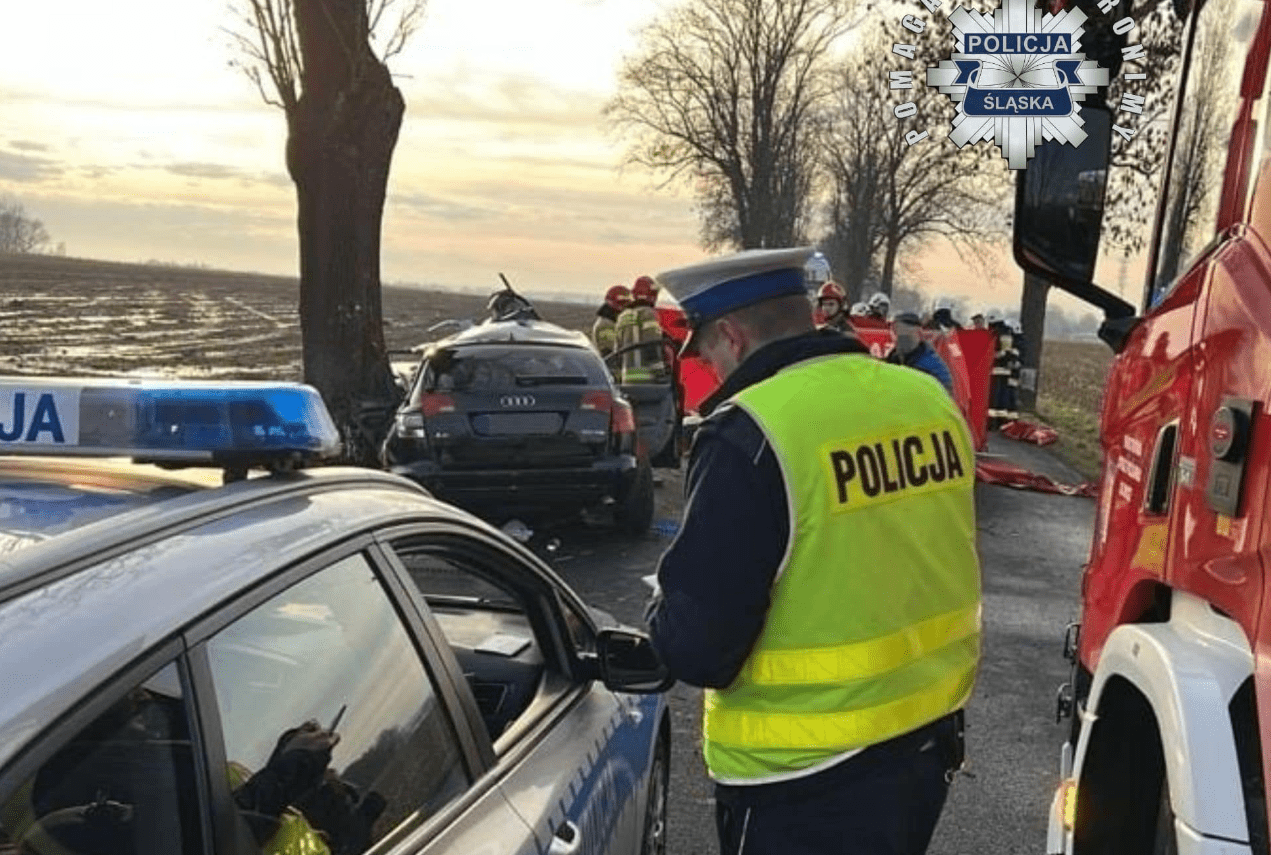 Kolejny śmiertelny wypadek w niedzielę w woj. śląskim. Po wypadku śmiertelnym koło Myszkowa do tragedii doszło w okolicach Gliwic. Koszmarny wypadek 31 grudnia 2023 wydarzył się o godzinie12.45 na granicy między Gliwicami a Żernicą w gminie Pilchowice. Tu doszło do tragedii. 40-letni kierowca audi a6 na łuku drogi zderzył się bocznie z nadjeżdżającym z naprzeciwka audi a4. Potem utracił panowanie nad pojazdem, a następnie wypadł z drogi i uderzył w przydrożne drzewo. Uderzył w nie drzwiami kierowcy.