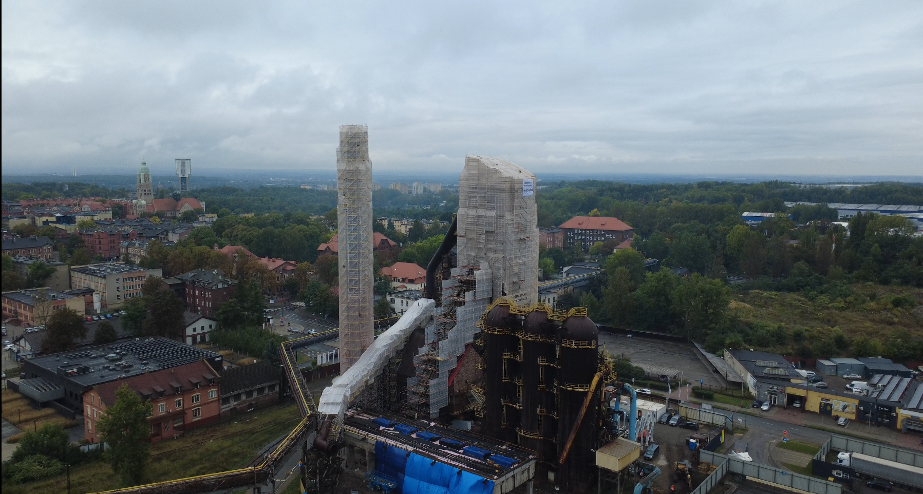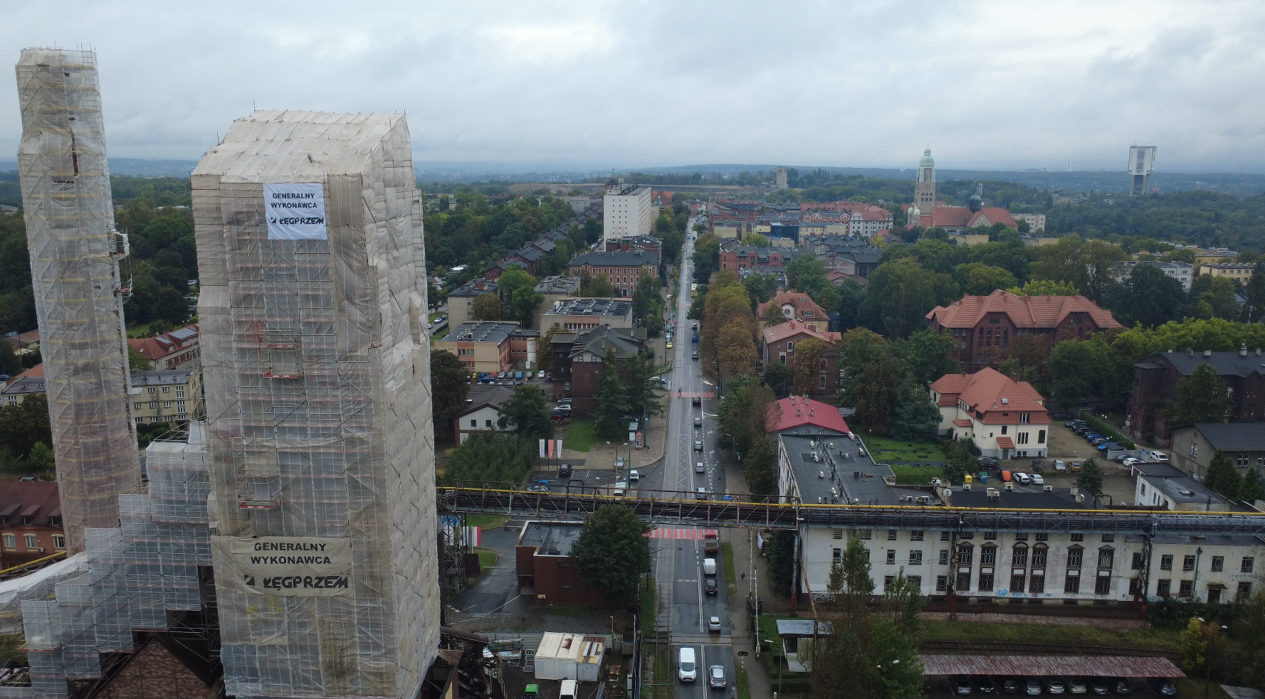 Obecnie trwają kluczowe prace przy konstrukcji stalowej. Zużyte elementy są wymieniane, pozostałe – czyszczone i malowane. Komisja konserwatorska nadzoruje dobór impregnatów, tak by obiekt odzyskał oryginalny wygląd. Równolegle czyszczony jest komin. Widać też nowe elementy – przesypownia zyskała stropodach i świetliki, a od strony ul. Piotra Niedurnego rośnie stalowa konstrukcja nowego budynku wejściowego.