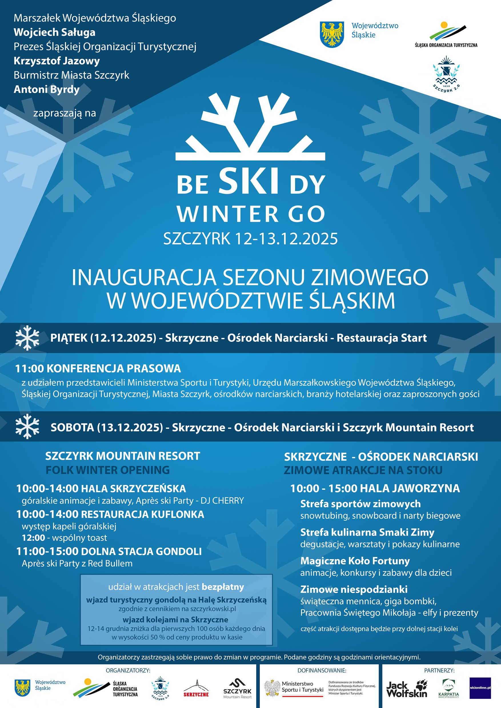Dziś w Szczyrku odbędzie się uroczysta inauguracja sezonu zimowego w województwie śląskim pod hasłem „BeSKIdy Winter Go” 2025. Impreza, organizowana przez Urząd Marszałkowski, Śląską Organizację Turystyczną oraz Miasto Szczyrk, przyciągnie zarówno przedstawicieli branży, jak i miłośników zimowej rekreacji.