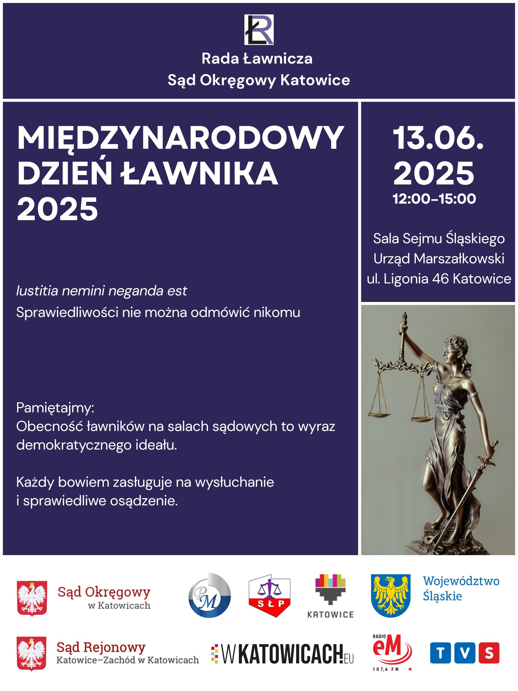 13 czerwca, w historycznej Sali Sejmu Śląskiego w Katowicach, odbędą się uroczyste obchody Międzynarodowego Dnia Ławnika – święta ludzi, którzy z oddaniem i odpowiedzialnością współtworzą wymiar sprawiedliwości w Polsce.