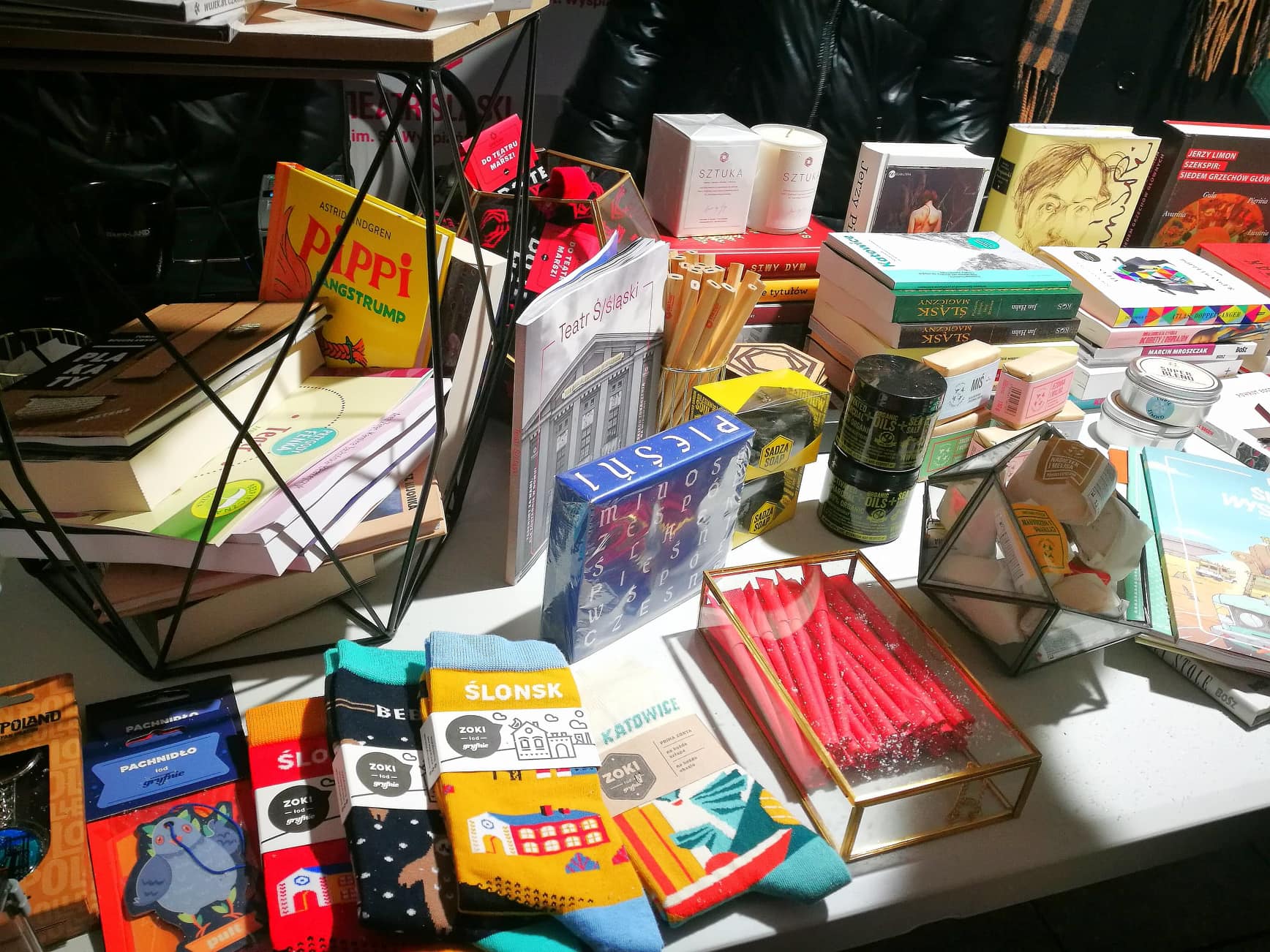 Są tu książki i płyty, audiobooki, plakaty i programy teatralne. Ale też autorskie koszulki, fotografie w oprawie, upominki, magnesy, zoki i kosmetyki. Mieści się przy ulicy Warszawskiej w Katowicach. Jest czynny w dniach wtorek-sobota w godz. 12.00-20.00