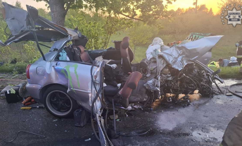 Młody kierowca zginął na miejscu – nie pomogła reanimacja. Obok niego jechało dwoje pasażerów: 24-letni mężczyzna i 20-letnia kobieta. Oboje zostali zabrani do szpitala w ciężkim stanie.