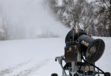 Do naśnieżania wykorzystano technologię stosowaną w kurortach narciarskich. Armatka śnieżna działa poprzez podłączenie do sieci wodociągowej – woda pod odpowiednim ciśnieniem, rozbijana sprężonym powietrzem na drobne kropelki, w kontakcie z zimnym powietrzem zamarza, tworząc kryształki śniegu.