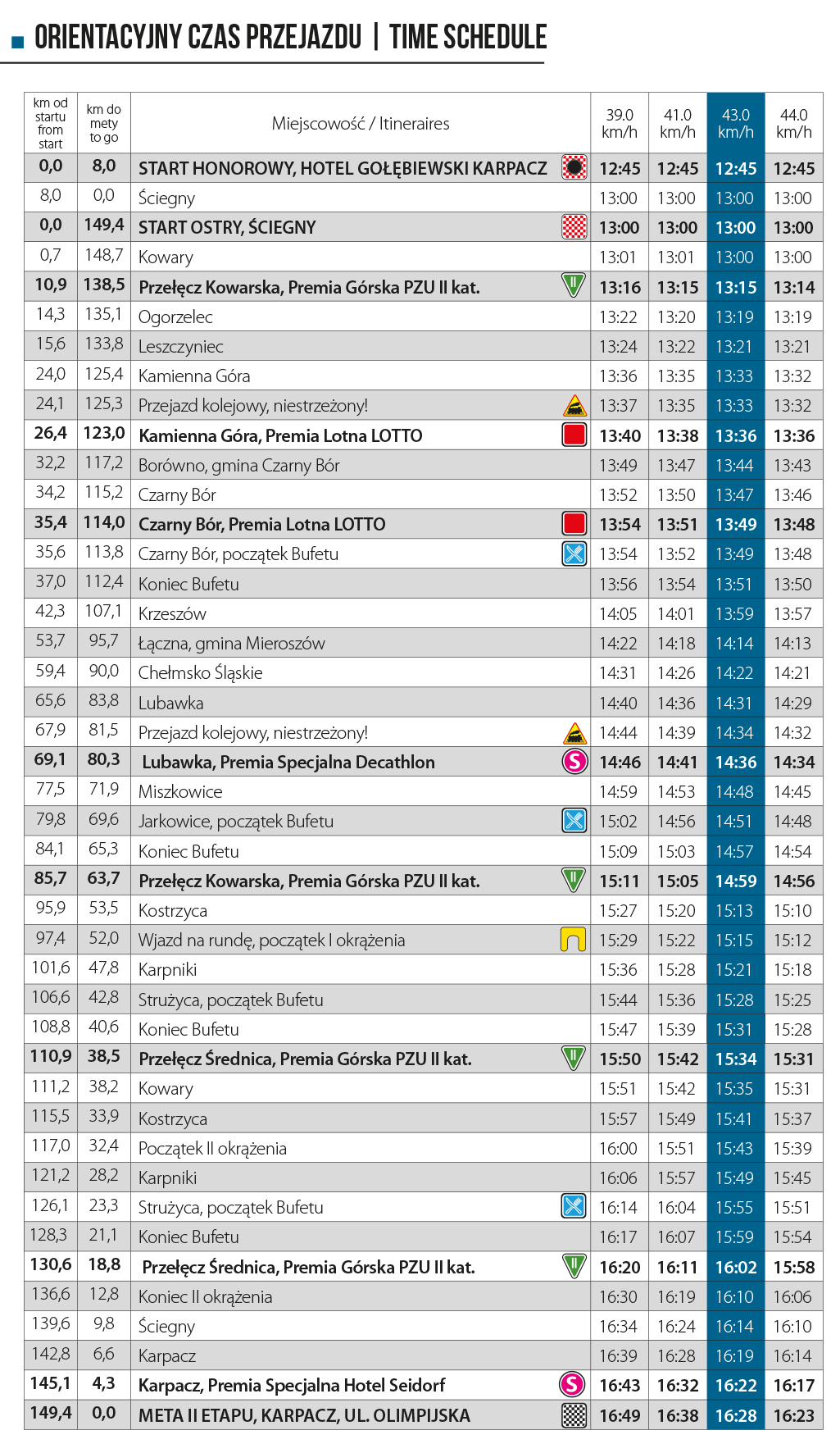 Etap drugi orientacyjny czas przejazdu Tour De PologneStart ostry nastąpi o godzinie 13:00 na ul. Turystyczna w Ściegnach.  Policja będzie wstrzymywać ruch w sposób operacyjny na 45-60 minut przed planowanym przejazdem kolarzy na poszczególnych odcinkach zgodnie z minutowym planem przejazdy wyścigu.