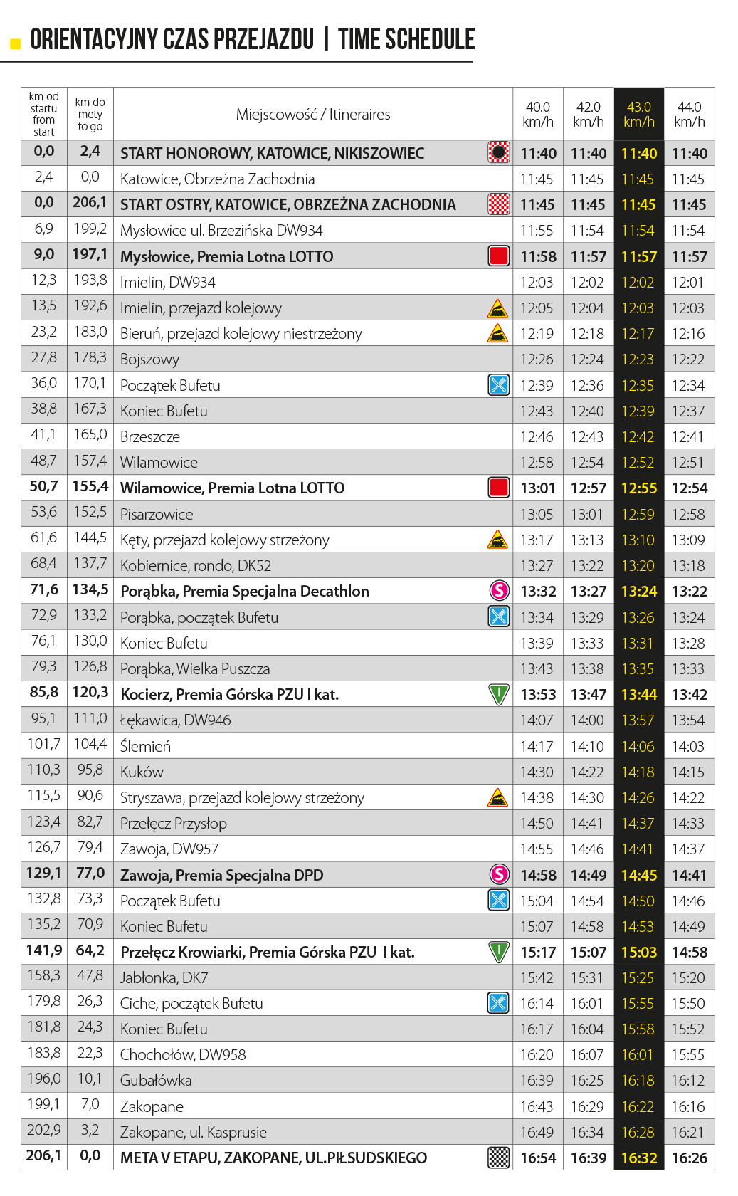 Minutowy plan czas przejazdu wyścigu Tour de Pologne etap V Katowice Zakopane Start ostry nastąpi o godzinie 11:45 na ul. Obrzeżna Zachodnia w Katowicach.