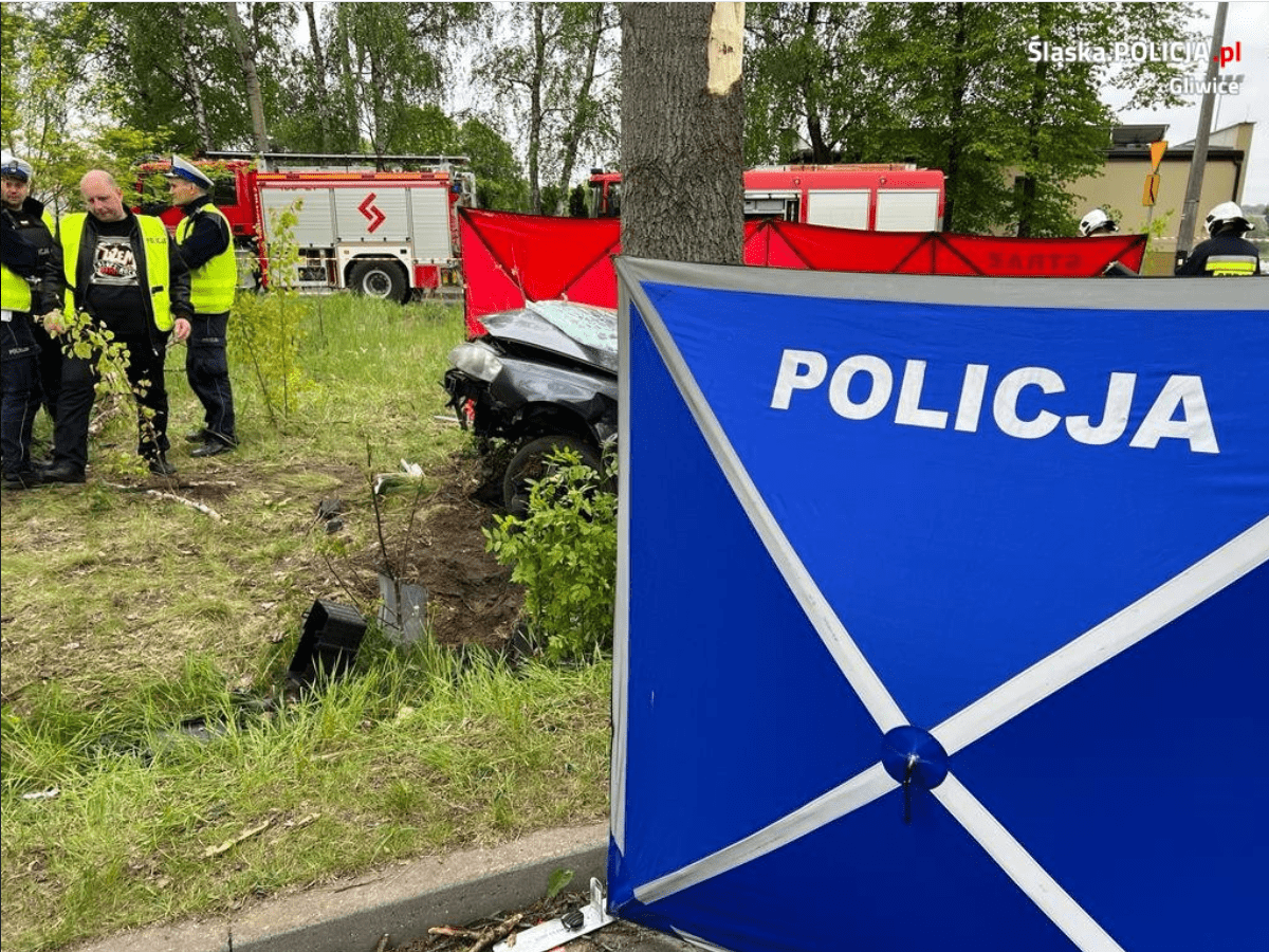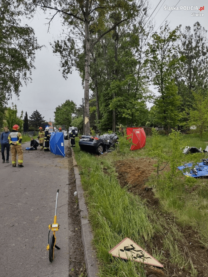 Tragiczny wypadek w Pilchowicach 20 maja. W sobotę o 5 rano na ul. Szkolnej kierowca samochodu osobowego marki Audi A3 uderzył w drzewo. Dwie osoby zginęły na miejscu.