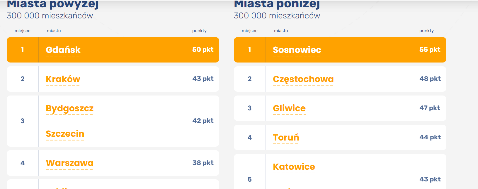 W rankingu 2023 Częstochowa po raz pierwszy od dwóch lat musiała ustąpić miejsca na szczycie. Jest druga w kraju w grupie miast do 300 tys. mieszkańców. Tto nadal świetny wynik.