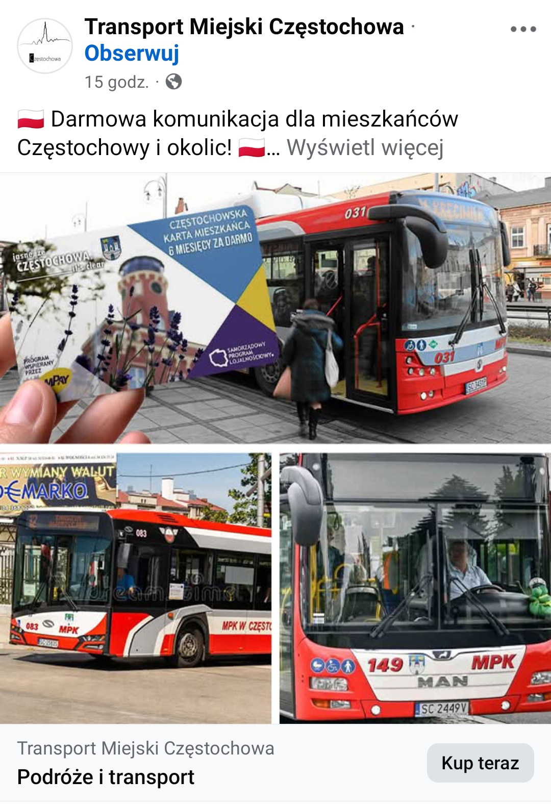 Uwaga pasażerowie! MPK w Częstochowie ostrzega przed fałszywym profilem na Facebooku