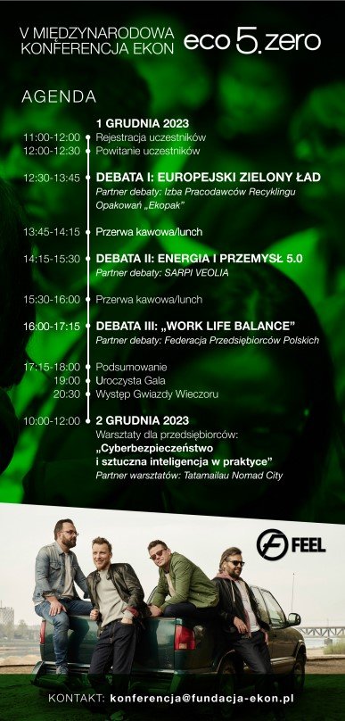 Konferencja trwa do 2 grudnia 2023 roku w Katowicach, w hotelu Monopol*****. Jest to kolejne wydarzenie promujące wdrażanie w Polsce modelu gospodarki o obiegu zamkniętym, opisujące zmiany na wielu płaszczyznach życia, m.in. gospodarki, prawa, ochrony środowiska czy naszych codziennych zachowań.