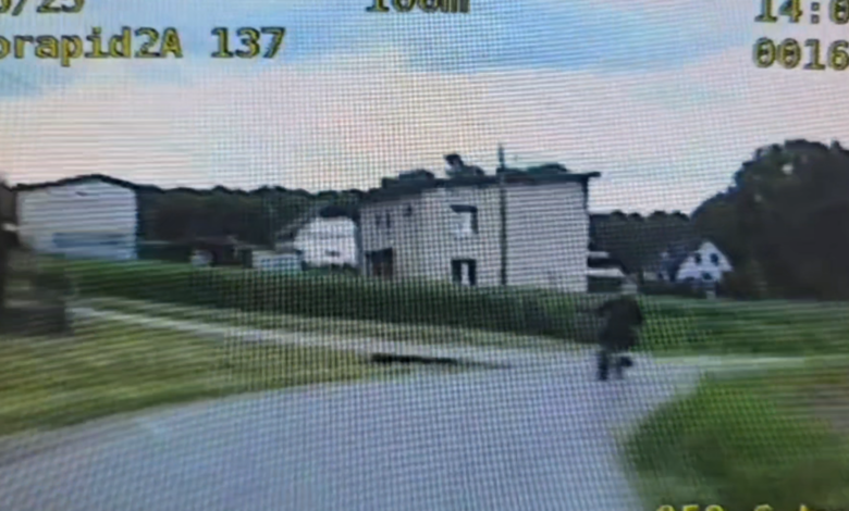 W pewnym momencie motocyklista zjechał z drogi i wjechał w pola uprawne, licząc, że zgubi pościg. Policjanci, nie mogąc kontynuować jazdy, zatrzymali się i zajechali mu drogę z innej strony. W ten sposób udało się zatrzymać pojazd i kierującego.