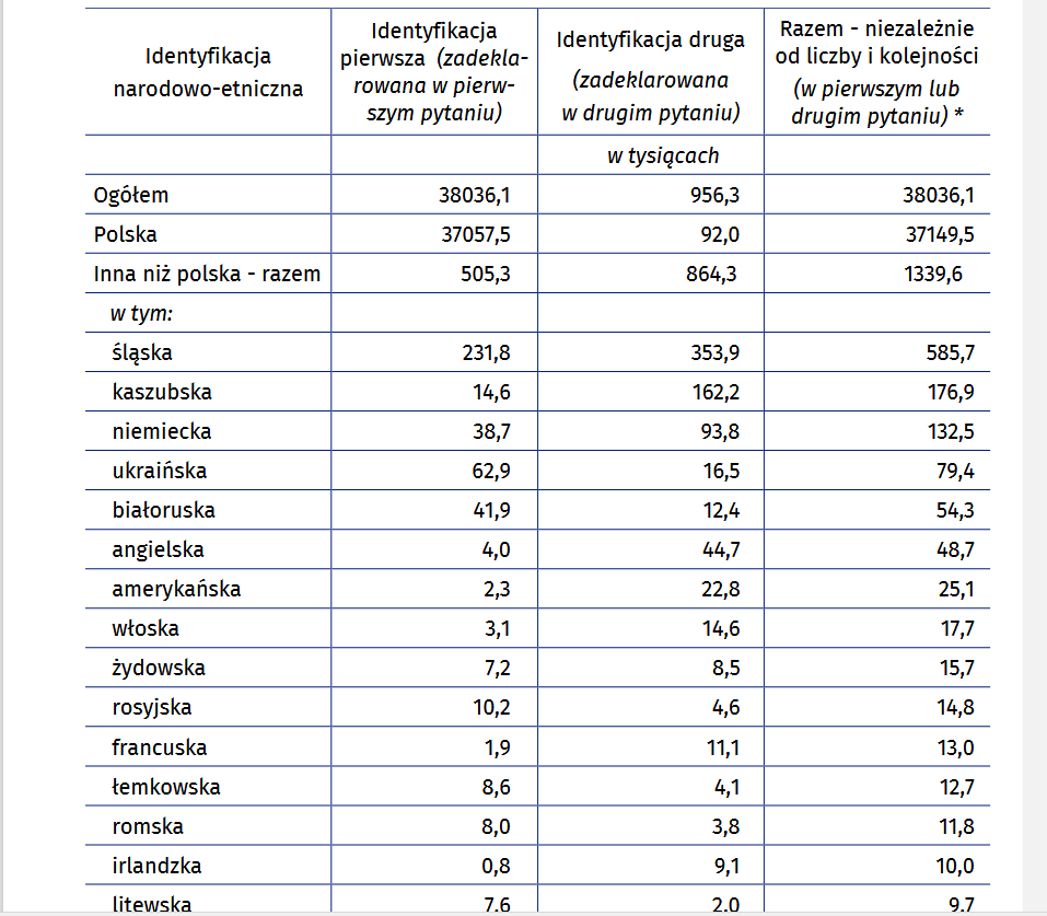 Zobaczcie tabelę z danymi ze spisu, dotyczącymi narodowości