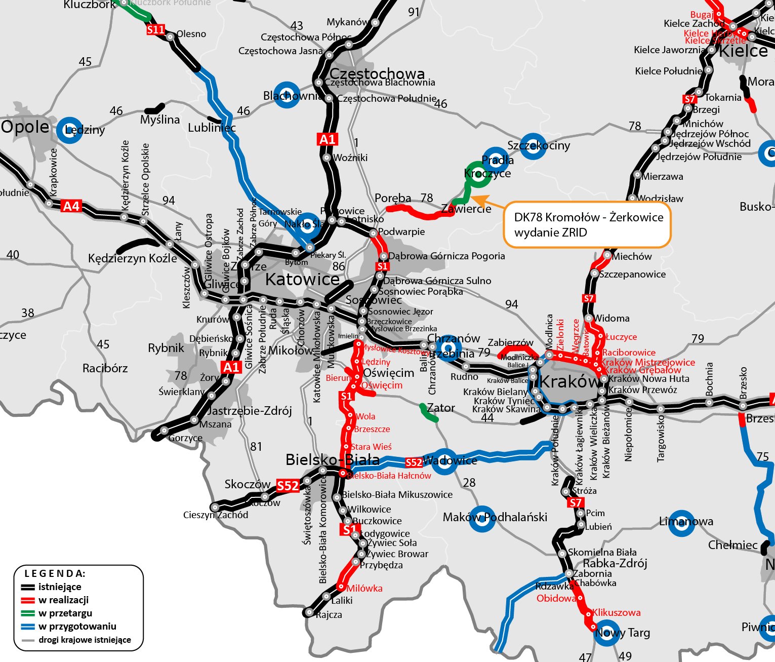 – Dla drugiego zadania, od Kromołowa do Zawiercia, 21 stycznia 2020 r. podpisaliśmy umowę na przygotowanie kompleksowej dokumentacji projektowej obejmującej projekt budowlany i wykonawczy wraz z materiałami do wniosku o decyzję ZRID. – dodają przedstawiciele GDDKiA. Odcinek o długości 7,5 km, kontynuacja budowanego odcinka obwodnicy Poręby i Zawiercia, swój początek będzie miał na budowanym węźle Kromołów. Zakończy się rondem w Żerkowicach, które powstanie w ramach obwodnicy Kroczyc.