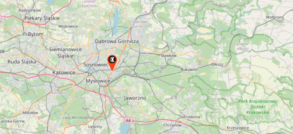 Lokalizacja wypadku na S1 wg mapy GDDKiA: