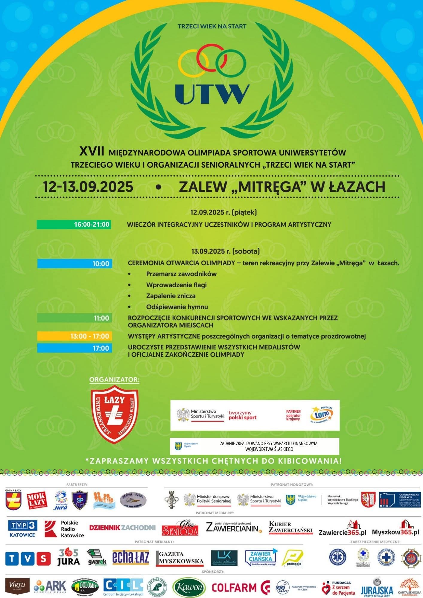 Łazy już w najbliższy weekend staną się areną niezwykłego święta sportu, integracji i międzypokoleniowej solidarności. Nad malowniczym Zalewem „Mitręga” odbędzie się XVII Międzynarodowa Olimpiada Sportowa Uniwersytetów Trzeciego Wieku i Organizacji Senioralnych „Trzeci Wiek na Start”. To wyjątkowe wydarzenie, które od lat przyciąga uczestników z całej Polski i zagranicy, pokazuje, że aktywność, pasja i radość życia nie mają wieku.