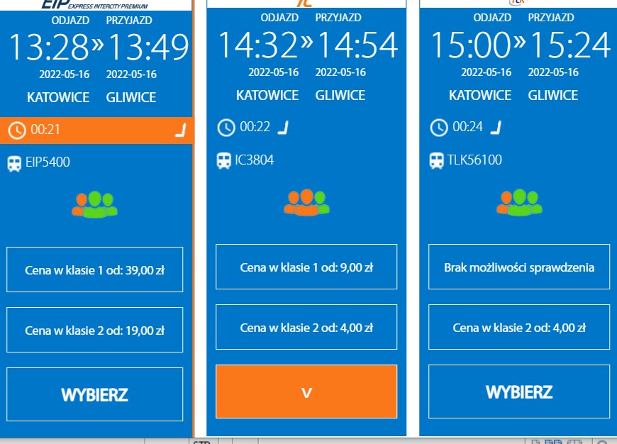 To ceny w drugiej klasie. W pierwszej bilety na tych trasach kosztują 9 zł. Z kolei podróż z Katowic do Zawiercia kosztuje 7 zł. Można też upolować bilety do Częstochowy za 9 zł w pierwszej klasie (TLK) lub za 12 zł – ale w drugiej. Zobaczcie.