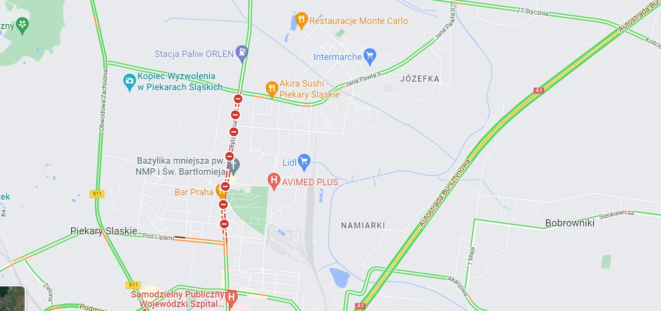 29 mama w Piekarach jest zakaz poruszania się pojazdów na ul. Bytomskiej (poza samochodami uprawnionych służb) na odcinku od skrzyżowania z ul. Ziętka do skrzyżowania z ul. Papieża Jana Pawła II w godzinach od 7 do 18.