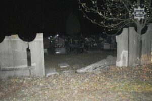 Pełen adrenaliny, 17-latek nie dostrzegł zagrożenia, jakie drzemie pod maską Mustanga. Na początku uderzył w zaparkowany samochód, a potem z impetem wjechał w ogrodzenie cmentarza, kończąc swoją podróż w miejscu, które dla wielu stanowi symbol wiecznego spokoju. Na szczęście nie odniósł żadnych obrażeń.