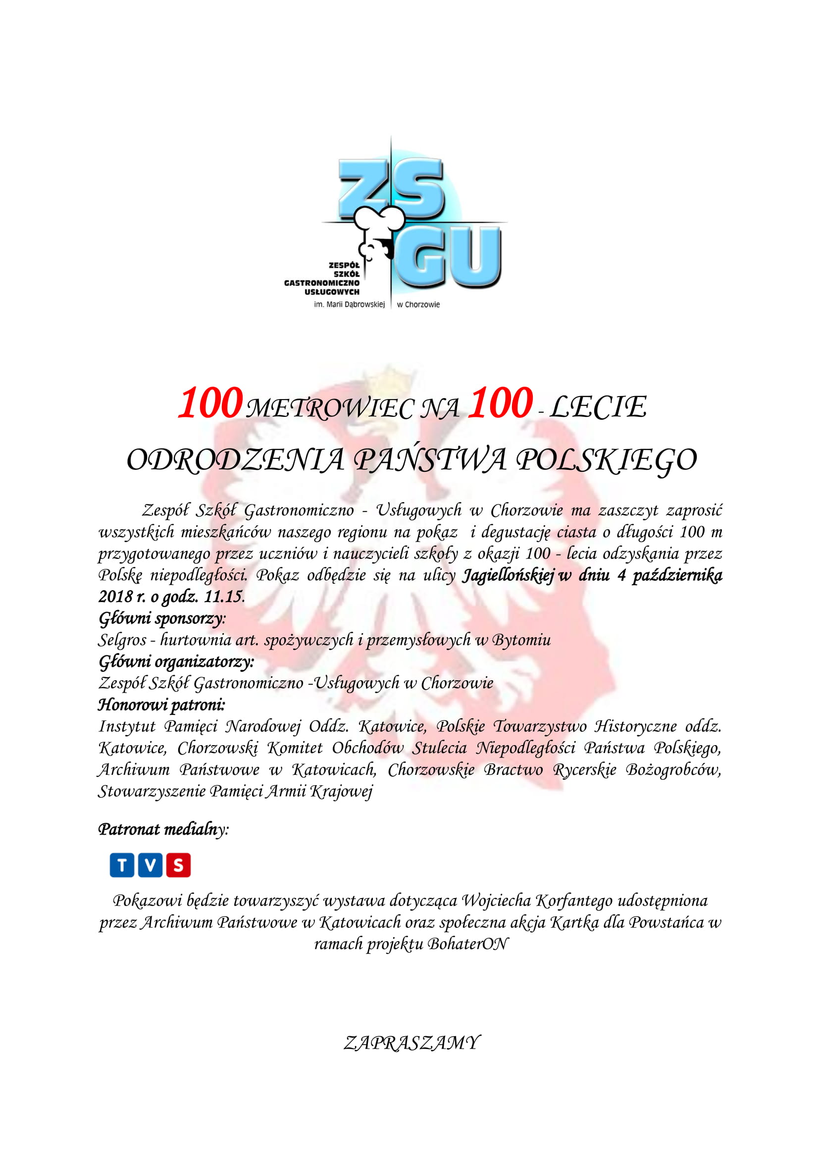 Strona główna/Patronat/100 metrowiec na 100 lecie odrodzenia Państwa Polskiego 100 metrowiec na 100 lecie odrodzenia Państwa Polskiego
