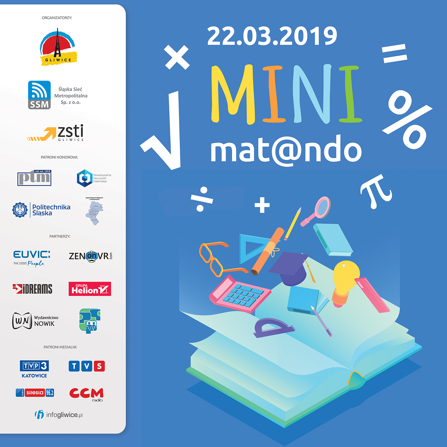 15 drużyn gimnazjalnych i 15 drużyn ze szkół podstawowych z województwa śląskiego zakwalifikowało się do finału Pierwszego Wojewódzkiego Konkursu Matematycznego Mini Mat@ndo. W eliminacjach, które odbyły się w dniach 7-8 marca, udział wzięło ponad 250 szkół z regionu. 22 marca